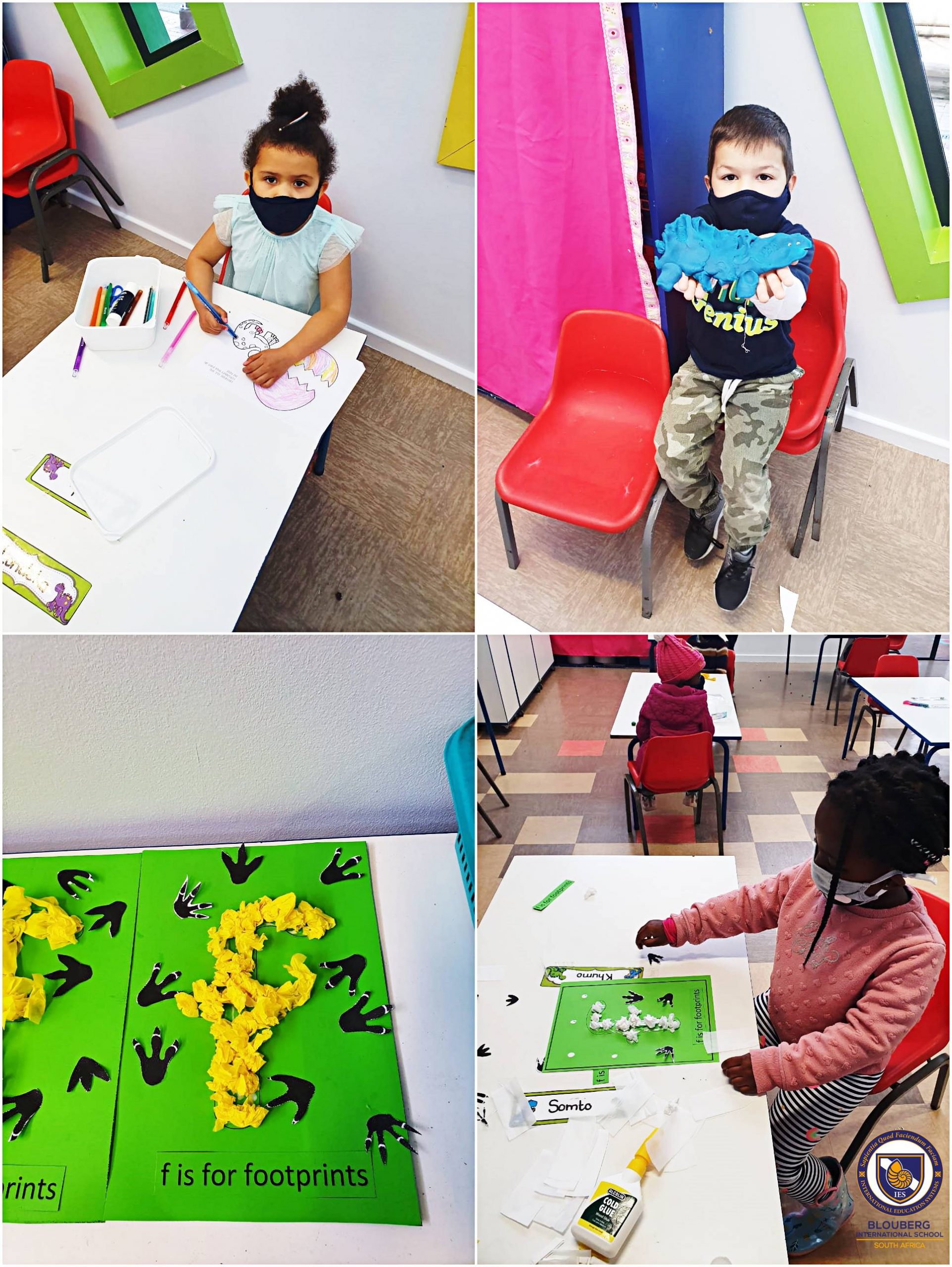 – Literacy: We decorated the letter of the week with dinosaur footprints.