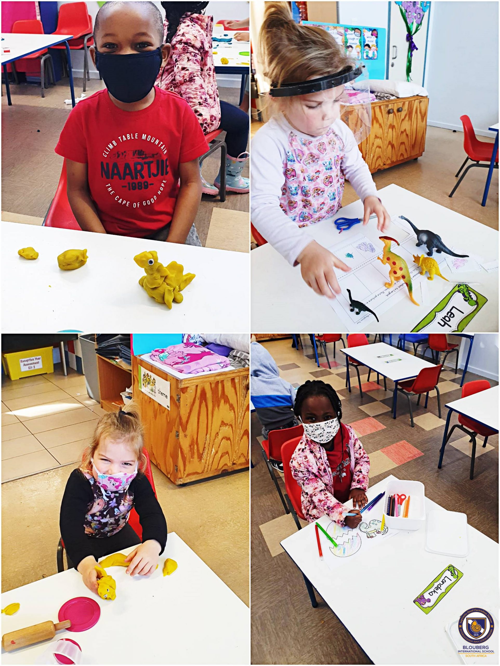 – Arts and crafts: We made our own dinosaurs during arts and crafts time and we played with play dough to develop our fine motor skills.