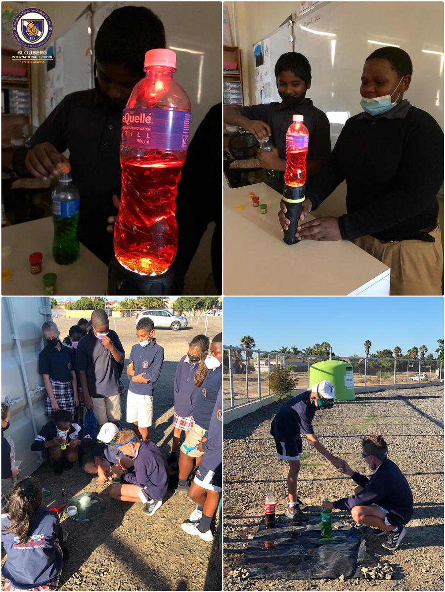 As seen in the pictures below, each student had to stretch a piece of plastic film tightly over the open end of a plastic bottle. They had to then light a small candle, causing endless excitement amongst the students! It was then that the fun started. The aim of the experiment was to test if sound vibrations travel through the air, as we cannot see them with our own eyes. If this theory was indeed correct, the flame would flicker when they tapped the bottom of their bottle!