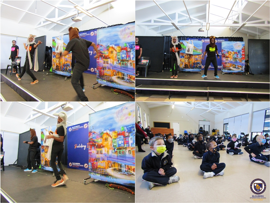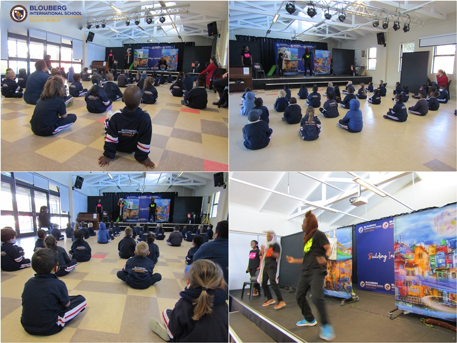 On Friday, 20th of August, we were elated to welcome the team from Hooked on Books to Blouberg International School. The annual event is a highlight in the school and it was with great excitement that the students lined up to go watch the performance in the Junior Hall.