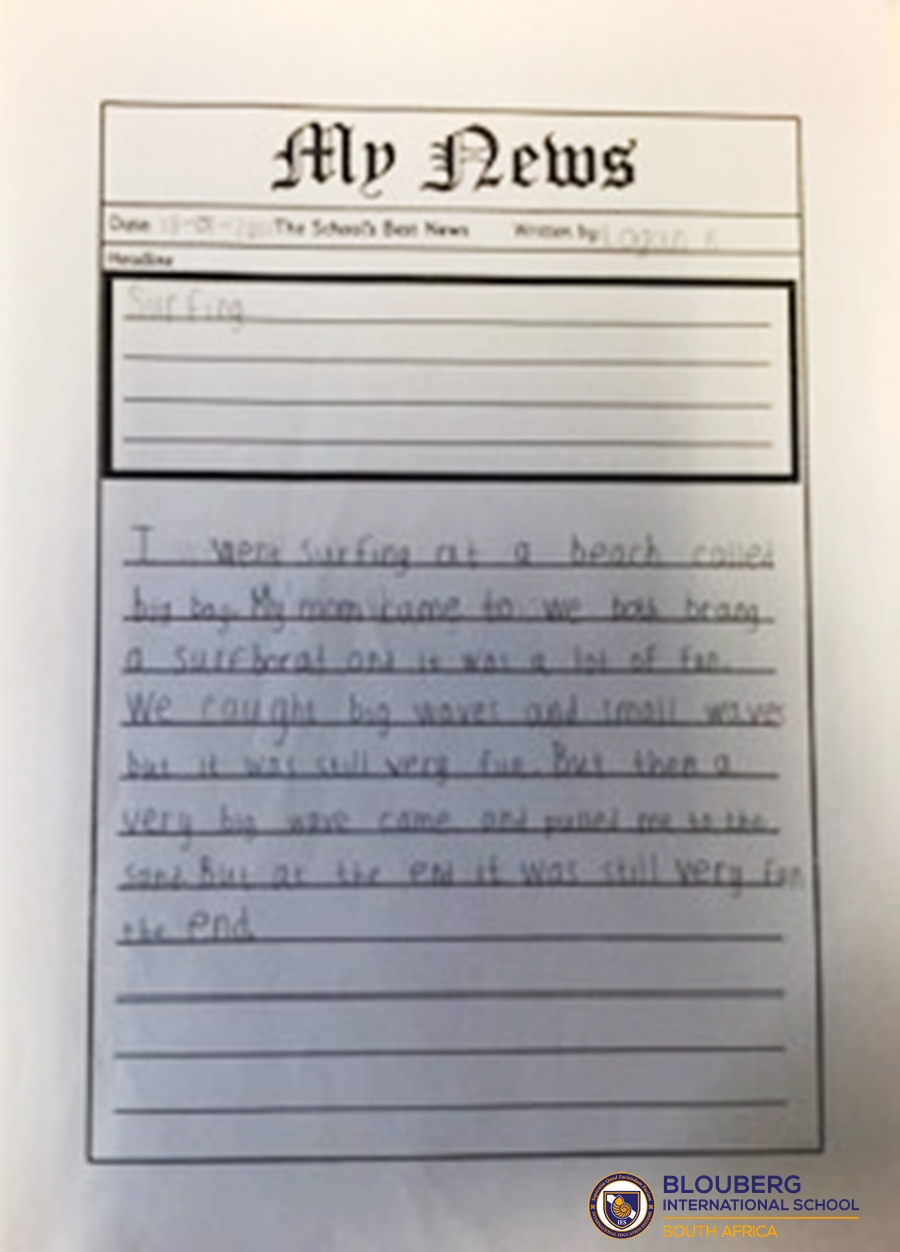 Lastly, the students wrote a few sentences in the form of a short news article to match their ‘snapshot’.